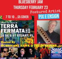 Doors open at 6pm. Happy hour with all craft drafts only $5 runs 6-7pm, and showtime runs 7-10pm. Only $5 BluesBerry Jam has become the premier blues jam in South Florida and is hosted by HURRICANE HAWK & THE INVADERS: Hawk Levy, Steve Bolanda, Tommy Aton and Pete St. George. Professional blues artists are sometimes welcome to sit in, but space is limited, arrive early to sign "the list". Each week also includes a special guest star.