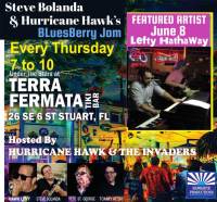 Only $5 BluesBerry Jam has become the premier blues jam in South Florida and is hosted by HURRICANE HAWK & THE INVADERS: Hawk Levy, Steve Bolanda, Tommy Aton and Pete St. George.