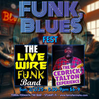 Tickets $6 Advnce, $9 at the door. You don't often find all this music in one place. The Best of RnB, Funk, Soul, and Blues HITS! One great song after the other! LIVE WIRE FUNK BAND, a dynamic group from Broward County performs first, followed by the incredible talent of the CEDRICK TALTON EXPERIENCE. Both bands will wow you. Cedrick is THE REAL DEAL BLUES and if you haven't heard his trio yet, you'll be VERY glad you came! Table Vendors - Art & Jewelry - and AWESOME FOOD await you! No outside cups or beverages allowed. $9 cash at entry OR get your ticket here for $6. TERRA FERMATA is located at 26 SE 6th St. which is one block off of Colorado Ave. Just 2 blocks west of the Kiwanis Parking Lot on Colorado Ave. Plenty of street parking around the venue. SEE YOU THERE FOR AN ABSOLUTLEY FANTASTIC SHOW! DOORS OPEN AT 5. Music 5:30 - 9 PM.