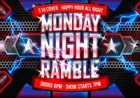 HAPPY HOUR DRINK PRICES ALL NIGHT, plus potluck dinner. The Ramble each week will host a different group of local band members for an all-star band of musicians. Plus select guests sitting in. $10 admission. GUESTS TONIGHT TBA