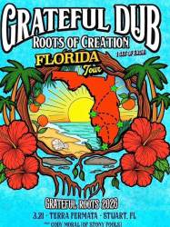 GRATEFUL DUB: a Reggae-infused tribute to the GRATEFUL DEAD - RoC (Roots of Creation) has taken on a unique new project: Grateful Dub: a Reggae-infused tribute to the Jerry Garcia & The Grateful Dead. Combining their longtime love for Reggae-Dub style music and the Grateful Dead, RoC reworked some of the world's favorite Dead tunes into a new studio album. RoC had the pleasure of working in the studio with the legendary 5-time Grammy winner Errol Brown who was Bob Marley's sound engineer for this project. Grateful Dub is also being performed live in its entirety at festivals, theatres, and clubs around the country, and features rotating live special guests that has included Melvin Seals (Jerry Garcia Band), Scott Guberman (Phil Lesh), Zach Nugent, RyMo, AG, & Paul W. (Slightly Stoopid), G. Love (G. Love & Special Sauce), Mihali (Twiddle), Dan Kelly (Fortunate Youth) and others. Grateful Dub captures the spirit and magic of the Grateful Dead, while laying it down Reggae-Dub style.