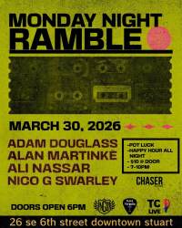 HAPPY HOUR DRINK PRICES ALL NIGHT. The Ramble each week will host a different group of local band members for an all-star band of musicians. Plus select guests sitting in. $10 admission. GUESTS TONIGHT TBA